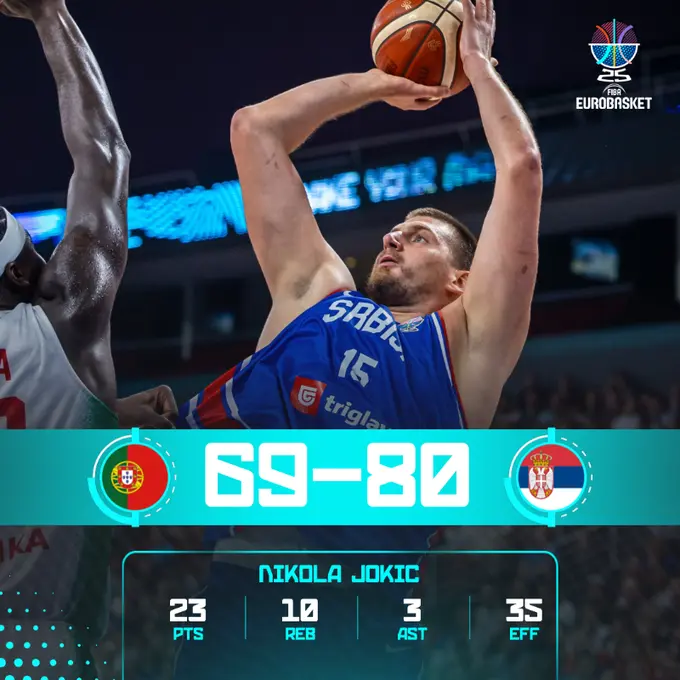 北京时间8月30日凌晨,2025年男篮欧洲杯小组赛,塞尔维亚男篮80-69击败葡萄牙男篮拿到二连胜。这场比赛塞尔维亚最多只领先葡萄牙18分,感觉塞尔维亚男篮没有尽全力去打这场比赛,毕竟约老师仅仅登场22分钟就打卡下班。